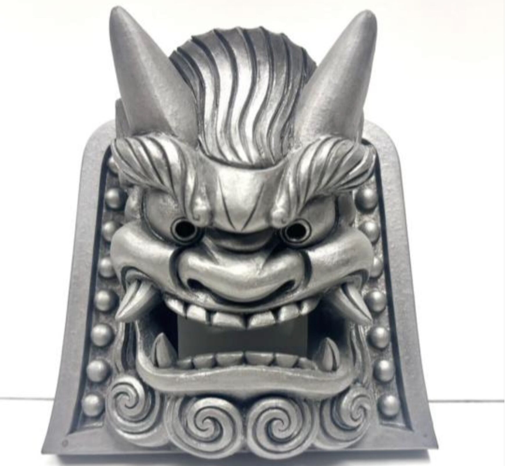 職人によって制作された本物思考の鬼瓦で、圧倒的な迫力を誇るアイテムです。伝統的な鬼瓦のスタイルを維持しつつ、現代のインテリアにも調和するデザインとなっています。